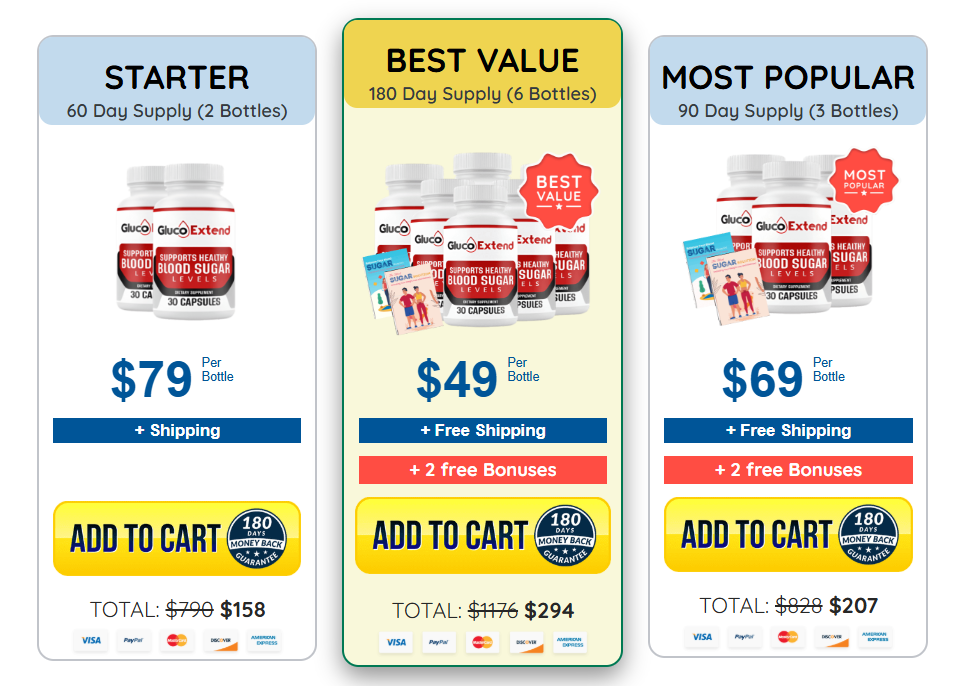 Gluco Extend is available in flexible packages designed to suit your needs and budget. Whether you’re just starting your journey to balanced blood sugar or looking for long-term daily support, there’s an option that fits perfectly.
